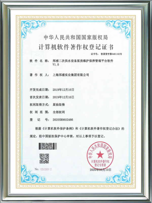 Opera Omnia Computer Software Registration Quisque Bangpu City Smart Pump Room Cloud Platform System Software V1.0